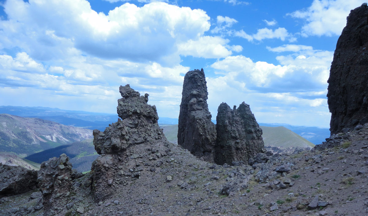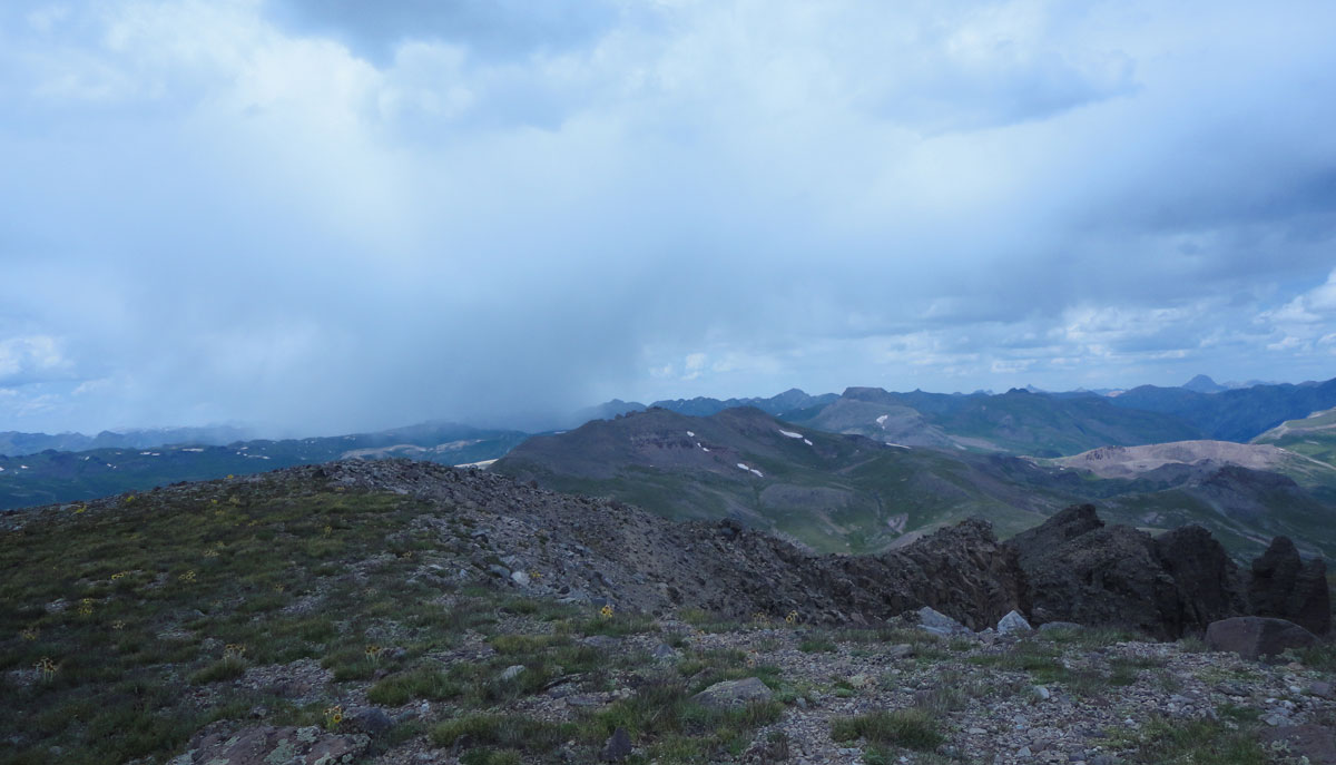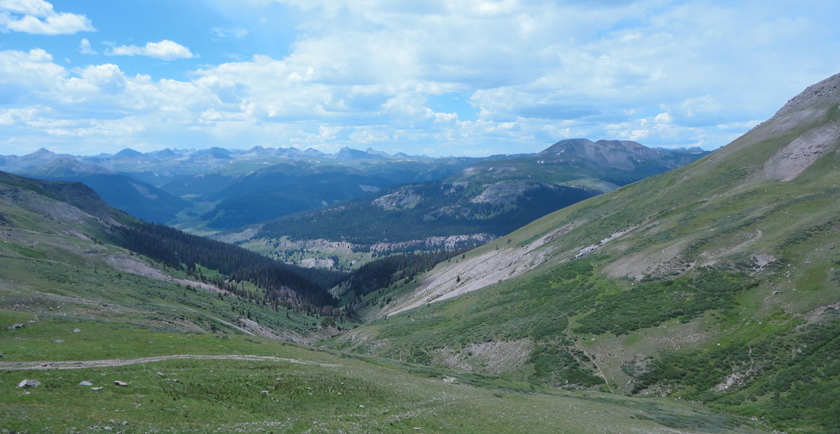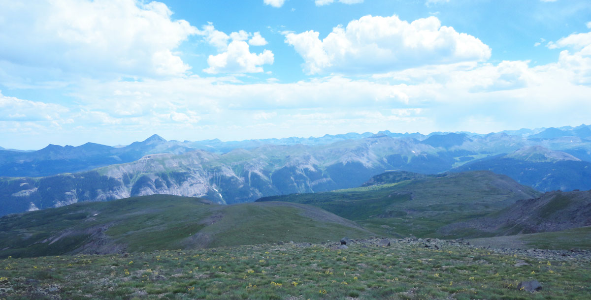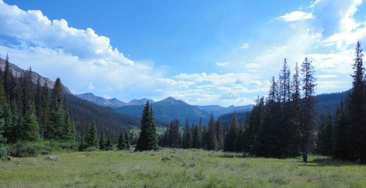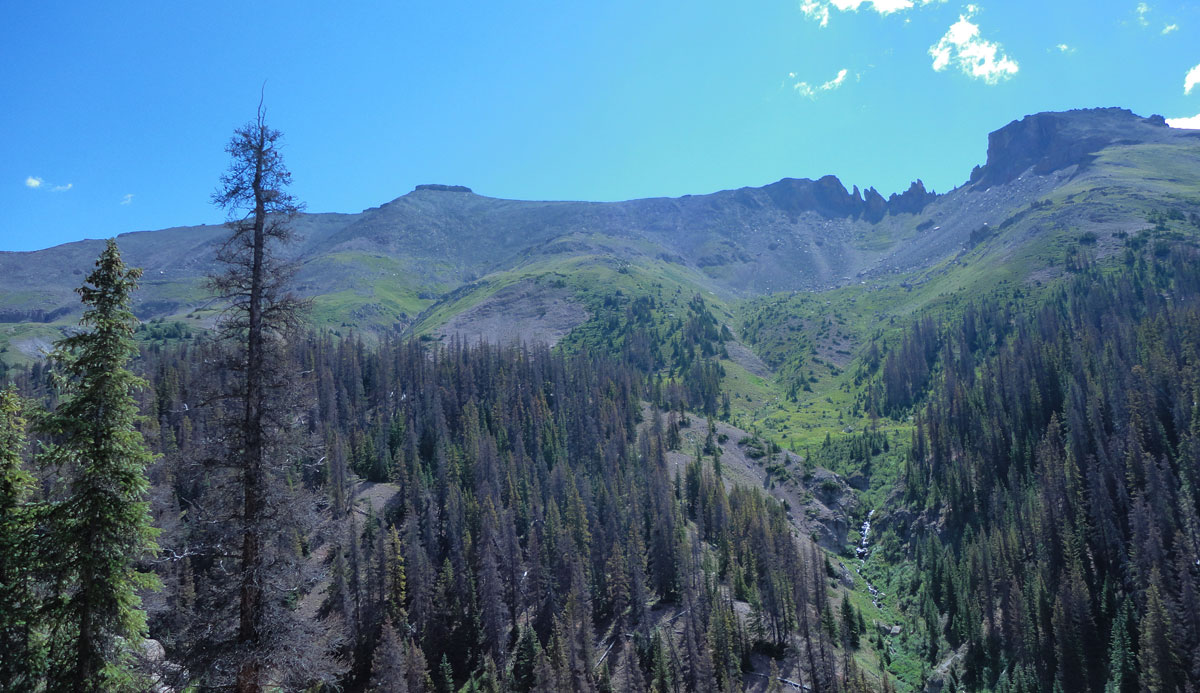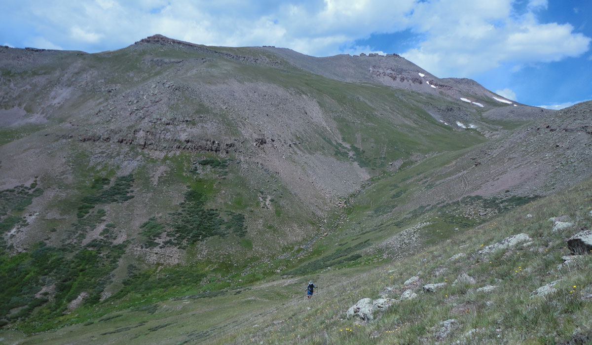 Pole Creek Mountain is fairly typical of many San Juan Mountain peaks. It starts on a trail, moves to an off-trail meadow, then to a steep grassy section, on to a section that can really only be described as a slog and finally, a rocky cap that can be ascended in a few different ways.