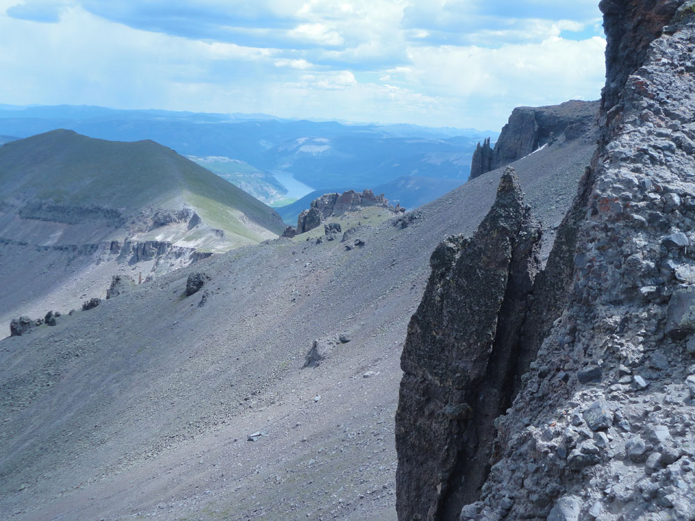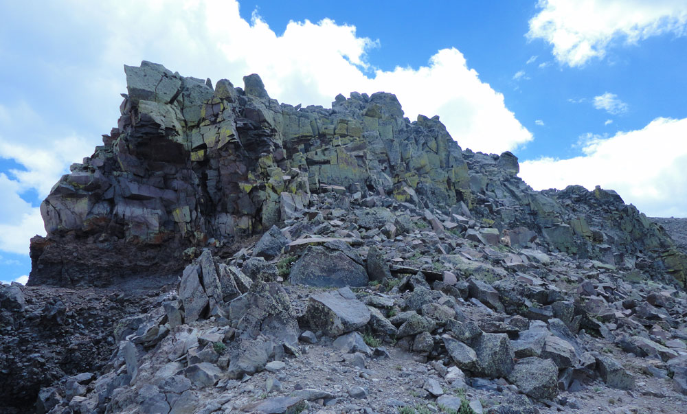 The steep grassy section on Pole Creek was really not bad. The bunch grass had created a number of small steps allowing us to make pretty good time. However, the rocky slog was something else. In this case I define the slog as a long, steep, pile of rocks that takes a considerable amount of time to ascend and, depending on the condition of your knees, even longer to descend. The rocks range in size from dinner plates to Volkswagen Bugs. Most are firmly wedged into place but, just as you start to feel comfortable, one will move just as you put your full weight on it, slowing your pace and making you test your footing on each step until your comfort returns.