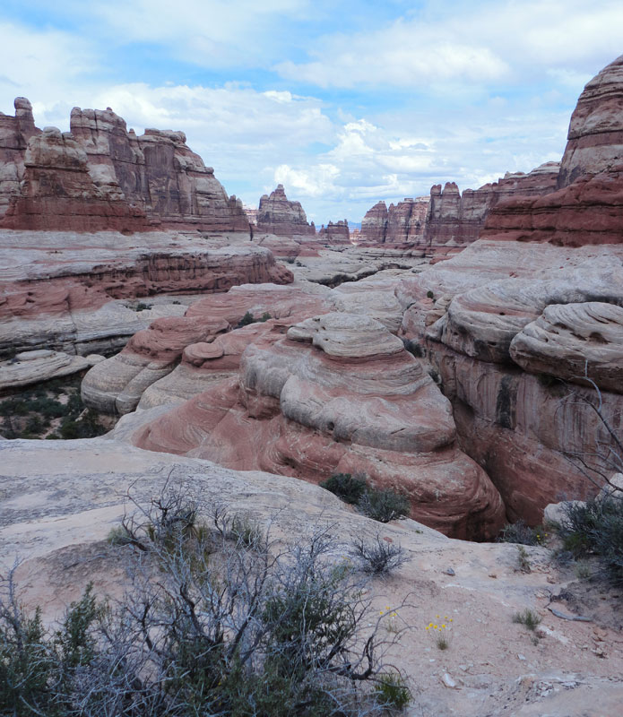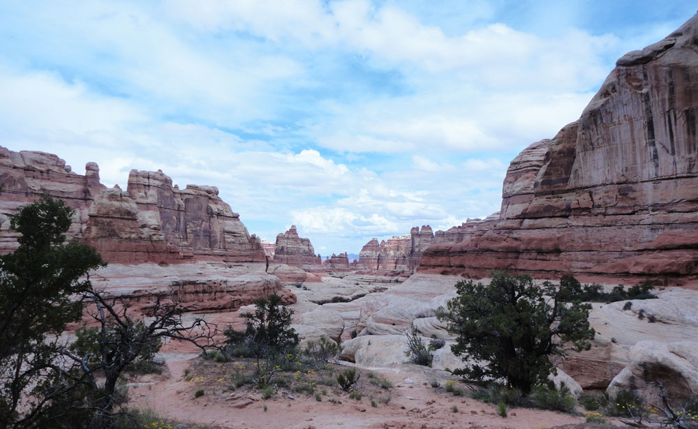 The Needles District of Canyonlands NP is our go-to place when we are looking for a desert experience. It is beautiful, close to home, and not as crowded as Moab, which has become a Mecca for bicyclists year-round. While the campground in the park often fills up during peak season, the close-by Needles Outpost usually has spots available and the view of the Needles from there is breathtaking.